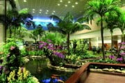 Jedną z atrakcji jest zwiedzanie… samego lotniska. Szczególny zachwyt budzą bujne ogrody usytuowane zarówno węwnątrz, jak i na zewnątrz portu lotniczego. Rosnące w nich kolorowe orchidee, palmy, rododendrony, kaktusy, ale także słoneczniki – otoczone strumykami i oczkami wodnymi dają wytchnienie po długiej podróży. Szczególnie wyrafinowane wydają się unoszące się nad nimi kolorowe motyle…Na Changi można także skorzystać z pokoi dla VIP-ów, specjalnych poczekalni, a na posiadaczy karty Diners Club czekają dwa saloniki. Jeden z nich – Plaza Premium Lounge oferuje bezpłatnie zdrowe przekąski, napoje, dostęp do internetu. Za dodatkową opłatą można tam skorzystać z sali fitness, zabiegów masażu i refleksologii stóp, a także wynająć pokój.