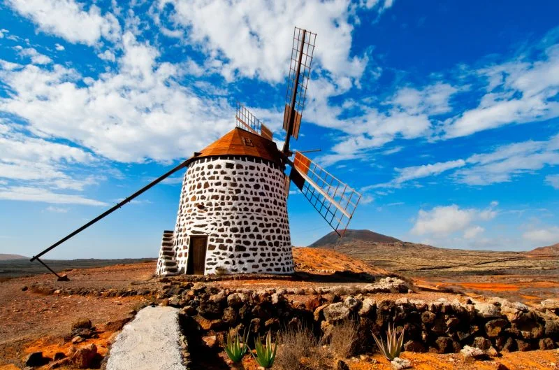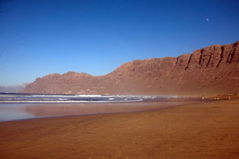 Kierując się chronologią postanowiłam rozpocząć znajomość z archipelagiem od jego najstarszych członków. Wyspy Fuerteventura i Lanzarote położone są najbliżej Afryki, 100 km od brzegów Maroka. Dzięki temu cechują się suchym, jak na Atlantyk, klimatem. I niespodzianka – Fuerteventura powitała mnie późnym wieczorem wrażeniem księżycowej pustki i wiatrem sirocco niosącym znad Afryki chmury zupełnie nie księżycowego pyłu. Cóż, miało nie padać, a piasek to w końcu nie deszcz.