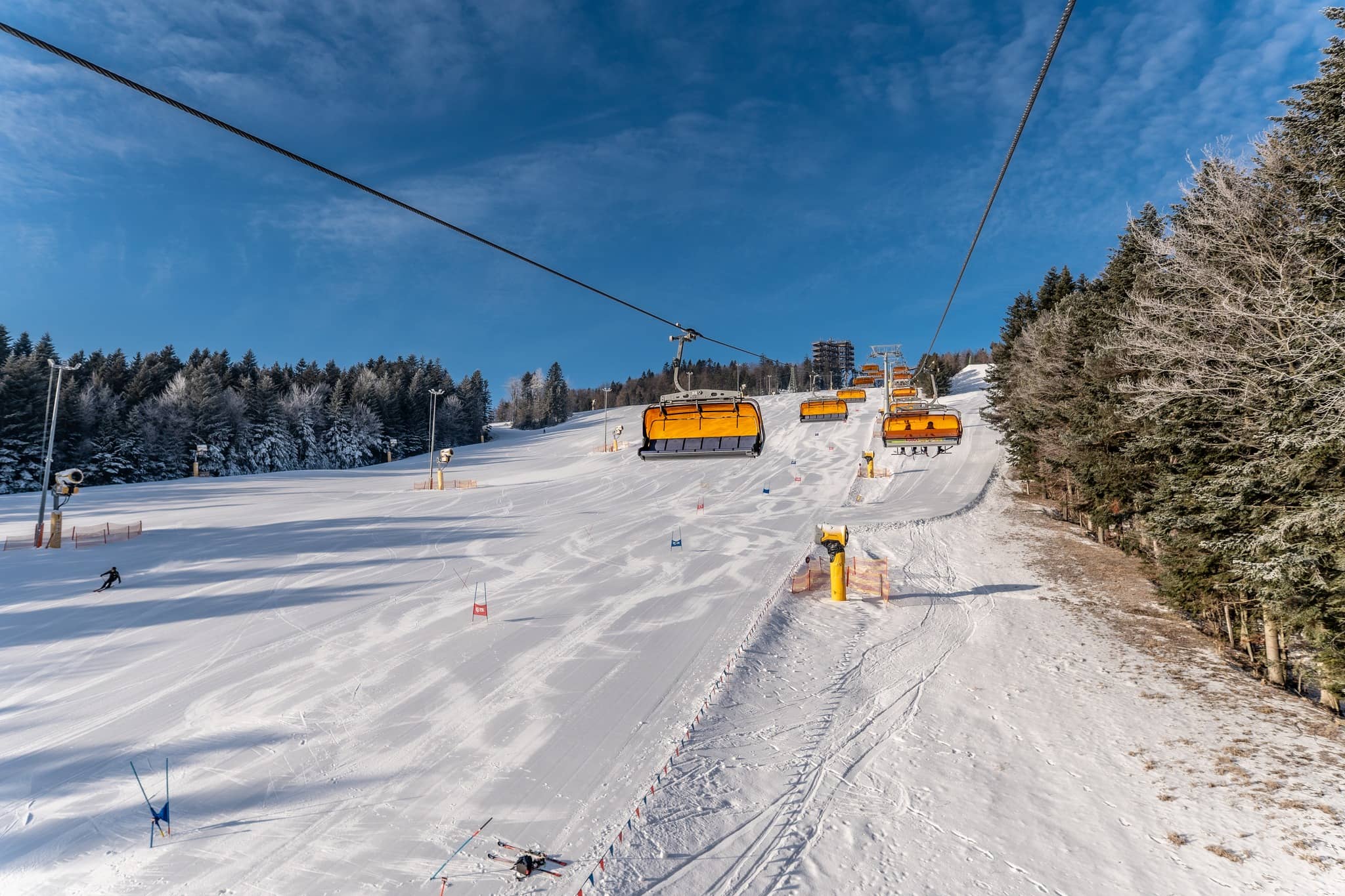 Większość stoków jest sztucznie naśnieżana, ratrakowana i oświetlona, co pozwala cieszyć się wieczorną jazdą przez większą część sezonu. Sercem ośrodka są dwie szybkie, 6‑osobowe koleje krzesełkowe Doppelmayr z osłonami przeciwwiatrowymi, obsługujące główne trasy, oraz wygodny wyciąg taśmowy/baby lift dla dzieci i początkujących. Na lubiących adrenalinę czeka snowparku. Na dolnej stacji mamy do dyspozycji restaurację, które serwuje wyjątkowo smaczną kuchnię – możemy polecić doskonałą pizzę z pieca opalanego drewnem, zupę pomidorową i lokalne wędliny.