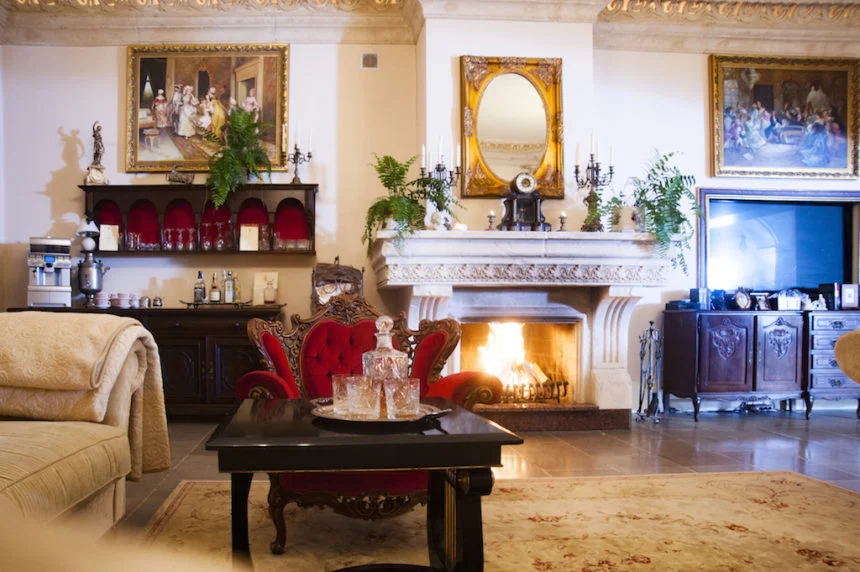 Do dyspozycji gości jest 9 różanych sypialni dla łącznie 18 osób, które są usytuowane w różnych zakamarkach na terenie obiektu. Wymagający klienci mogą zdecydować się na różany apartament z kominkiem lub połączenie apartamentu i różanej sypialni. We wszystkich sypialniach królują jasne barwy i – róże. Doba hotelowa kończy się tu o 14:00,
