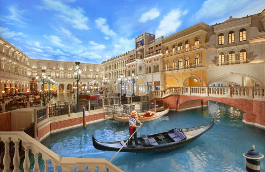 Ten luksusowy hotel – oczywiście jak przystało na Las Vegas – wielkie kasyno ma 40 kondygnacji, wznoszących się na wysokość 145 metrów. Oferuje ponad 4 tysiące rozległych suit,  a wraz z siostrzanymi, leżącymi nieopodal Sands Expo Convention Center i The Palazzo Hotel and Casino Resort liczba to wzrasta do imponujących ponad 8 tysięcy! The Venetian jest jak prawdziwa Wenecja – w jego centralnym punkcie znajdują się replika dzwonnicy Świętego Marka o naturalnych wymiarach oraz Grand Canal, który przemierzają oryginalne weneckie gondole.