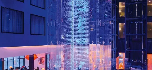 To prawdziwie niezwykła budowla. Wysoka na 16 metrów, wykonana z 38. grubych, akrylowych paneli, kryje w sobie równie przezroczyste stojaki, w których umieszczono 4 tysiące butelek przedniego wina i szampana. Wartość zgromadzonych w wieży trunków przekracza zazwyczaj 220 tysięcy franków szwajcarskich, co dla posiadacza kredytu w tej walucie w naszym banku, może być kłopotem sercowym. Spektakularna wieża to trzeci tego typu projekt, dwa poprzednie są w Radissonach w Las Vegas i Londynie. Wieczorami, pomiędzy 17:15 a 23:30, odbywa się tam niezwykły spektakl. Wine Angels, czyli dziewczyny ubrane na biało i zawieszone na specjalnej uprzęży prezentują akrobatyczny taniec a jeśli ktoś zamówi konkretny gatunek wina, który zamknięty jest w wieży, aniołek mu tę butelkę dostarczy, wykonując przy tym kilka karkołomnych ewolucji. Oczywiście wszystko jest skomputeryzowane i stojak z trunkiem natychmiast zostaje podświetlony, zresztą wieża nieustannie zmienia kolory i jest industrialnym szaleństwem. Wystarczy dodać, że projekt i wykonanie ważącej ponad 27 ton konstrukcji kosztowały około 4 milionów franków.
