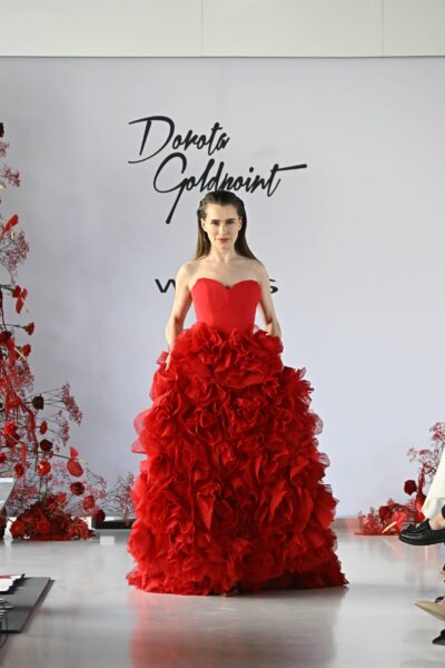 Paleta kolorystyczna była równie znacząca jak forma — dominowały biel, głęboka szmaragdowa zieleń, czerwień oraz klasyczna czerń. Każdy z tych kolorów opowiadał inną emocję: od czystości i nowego początku, przez siłę i dojrzałość, po odwagę i wewnętrzną transformację.