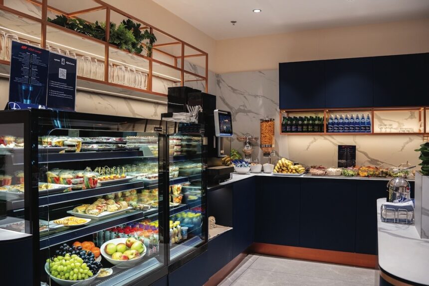 o dodatkowe 153 mkw., zajmując łącznie ponad 860 mkw. Tym samym salonik LOT-u oferuje ponad 60 dodatkowych miejsc siedzących. Nowością w rozbudowanej części jest m.in. samoobsługowy bar oraz sala konferencyjna, wyposażona w ekran i gniazda elektryczne.