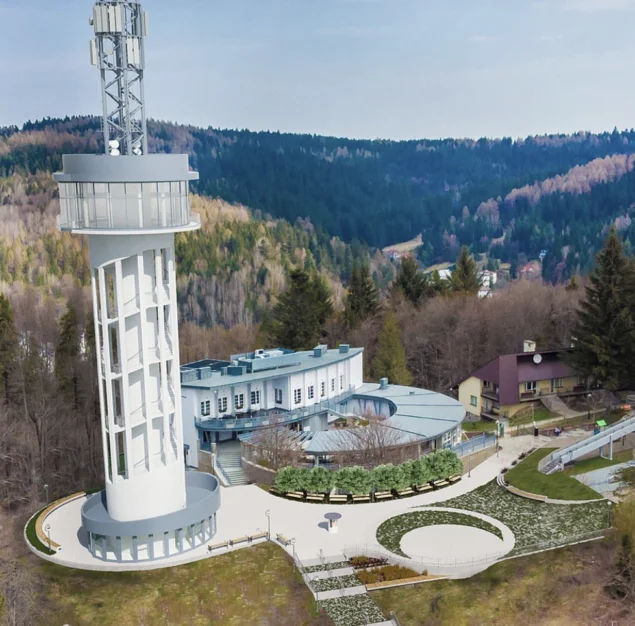 Zgodnie z założeniami w ośrodku powstanie także Wieża Widokowa wraz z punktem widokowym na wysokości 36 m, która znajdować się będzie przy budynku stacji górnej kolei PKL na Górze Parkowej. Z niej będziemy mogli podziwiać urokliwe krajobrazy Krynicy oraz Beskidu wraz z Jaworzyną Krynicką, a nawet Tatry. Obok wieży znajdzie się zielona strefa odpoczynku, w której turyści zrelaksują się i naładują baterie.