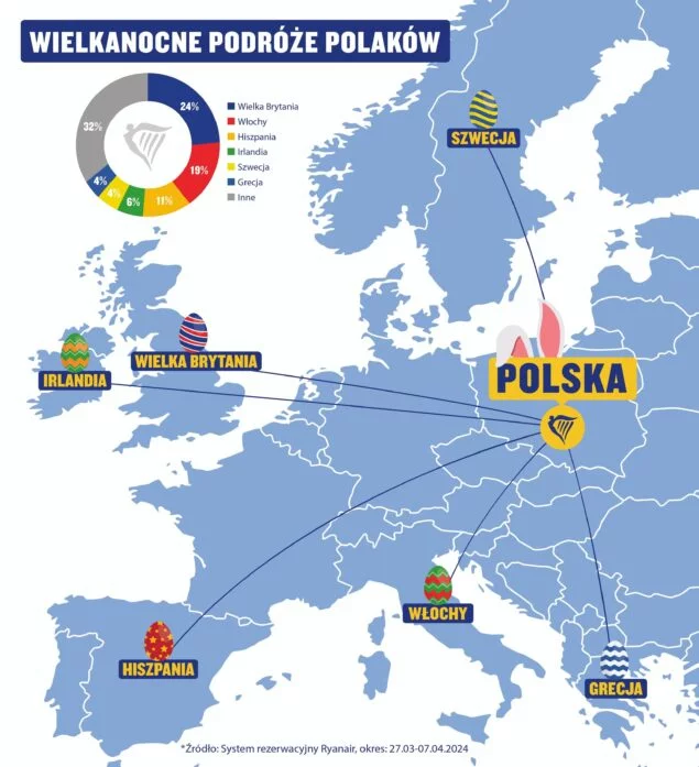 – Wielkanoc to doskonały czas na wiosenne wyprawy i odkrywanie europejskich destynacji – od 31 marca zaczyna obowiązywać letni rozkład lotów Ryanair, w którym nie tylko wracają ulubione wakacyjne kierunki, ale też pojawiają się zupełnie nowe destynacje, jak Olbia czy Dubrownik, zwiększamy też liczbę połączeń na takich popularnych kierunkach jak Alicante, Zadar, Malaga czy Malta – mówi Alicja Wójcik-Gołębiowska, Head of Communications CEE & Baltics w Ryanair. – Z radością obserwujemy, że Polacy bardzo chętnie podróżują w okresie wielkanocnym, czego dowodem jest ogromne zainteresowanie lotami do Włoch i Hiszpanii, a coraz większą popularnością cieszą się również takie kierunki jak Cypr, Wyspy Kanaryjskie, Chorwacja czy Portugalia. Z niecierpliwością czekamy na kolejnych polskich pasażerów, którzy odkrywają Europę z liniami lotniczymi Ryanair – dodaje.