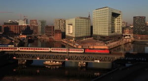 City Night Line (CNL) nach Paris auf der Oberhafenbrücke in Hamburg