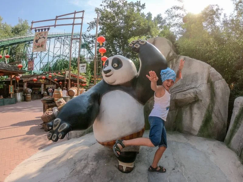 Na koniec jeszcze kilka informacji praktycznych. W każdym parku rozrywki bardzo restrykcyjnie przestrzegane są wymogi dotyczące minimalnego wzrostu czy wieku dziecka, które może z danej atrakcji skorzystać. Informacje o tym jakie są kryteria możecie sprawdzić na stronie internetowej, mapie parku czy w aplikacji na smarfony. Oczywiście przy każdym urządzeniu są dostępne miarki, by w razie wątpliwości sprawdzić czy dziecko może z danej atrakcji korzystać. Gdy wybieracie się na atrakcje wodne w czasie chłodniejszych dni, warto zabrać ze sobą kurtkę lub pelerynę przeciwdeszczową. Przydają się też ubrania na zmianę. My zabieramy zawsze ze sobą saszetkę na pasek, w której trzymamy portfel, dokumenty czy klucze do auta, a pozostałe rzeczy pakujemy do plecaka. Na wielu atrakcjach zabronione jest zabieranie ze sobą jakichkolwiek toreb. Zostawia się je w wydzielonych szafkach, przy pracownikach obsługi danej atrakcji. Jeśli nosicie okulary to na większości rollercoasterów musicie je zdjąć. Dlatego my, jako starzy okularnicy, polecamy na ten dzień szkła kontaktowe 😉